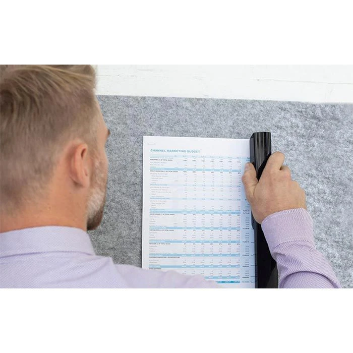 • Heft- und Anheftungsoptionen zum Befestigen von Dokumenten an Pinnwänden