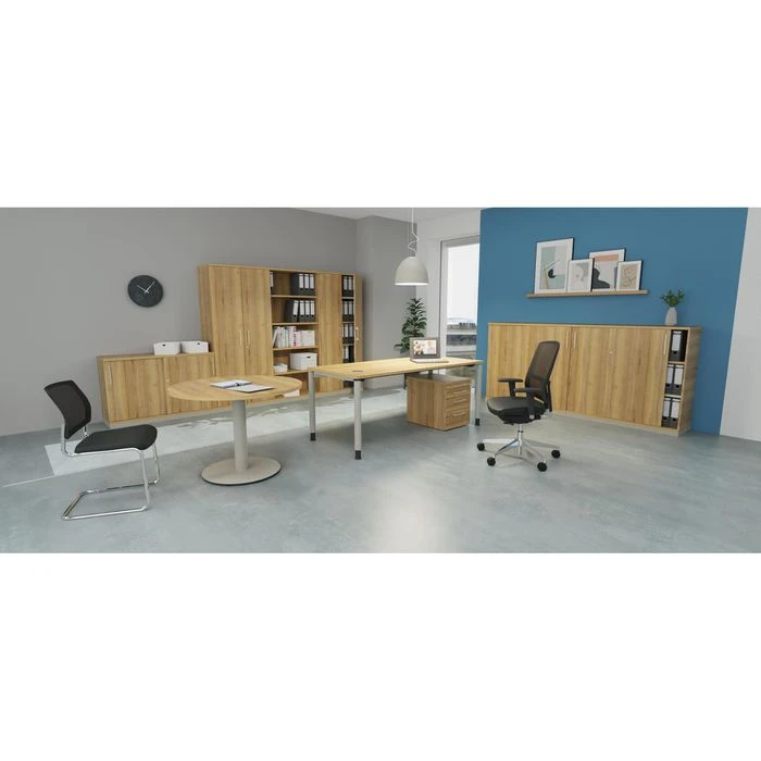 • Werkzeuglos und stufenlos höhenverstellbar über Sockelfüße