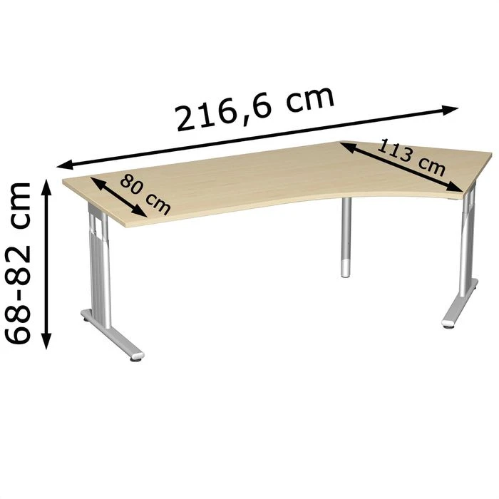 Maße: 216,6 x 68-82 x 80/113 cm (BxHxT)