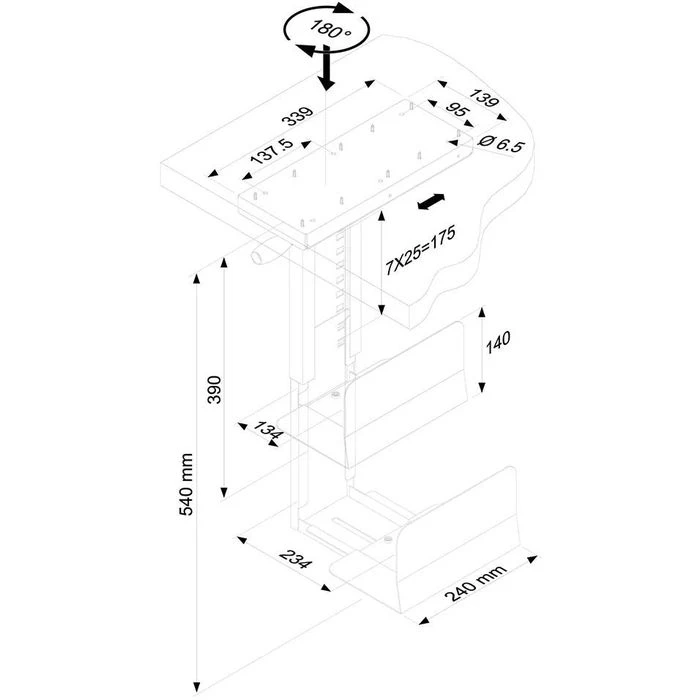• Befestigung an der Unterseite der Schreibtischplatte