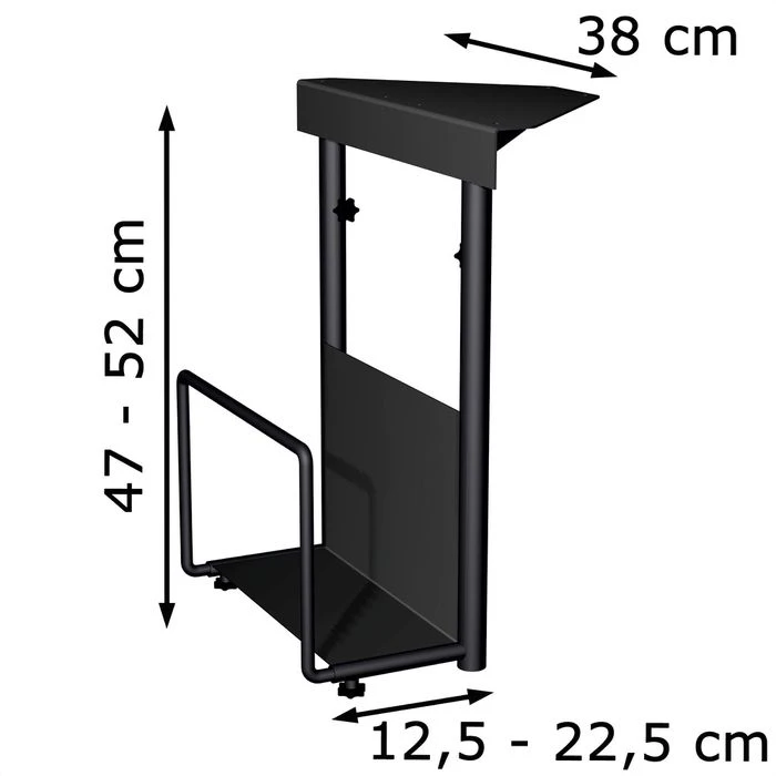 Maße: (BxHxT) 12,5 – 22,5 x 47 – 52 x 38 cm