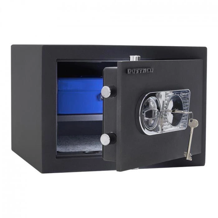 sonstiges: Versicherungsschutz möglich bis: 20.000 € (gewerblich) / 65.000 € (privat), Hochsicherheitsschloss EN 1300 Klasse A, Feuerschutz gegen leichte Brände durch Feuerfalz in der Türöffnung, dreiseitige Verriegelung mit 4 Bolzen, Türöffnungswinkel 90° durch innenliegende Scharniere, Türstärke 12 mm, Korpus mehrwandig, Schloss mit Aufbohrschutz, Klappgriff, Fachboden verstellbar, entspricht dem Deutschen Waffengesetz §36