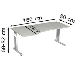 Geramöbel Schreibtisch Flex S-617306-LS, Lichtgrau, Höhenverstellbar, 180 X 68-82 X 100cm, Freiform